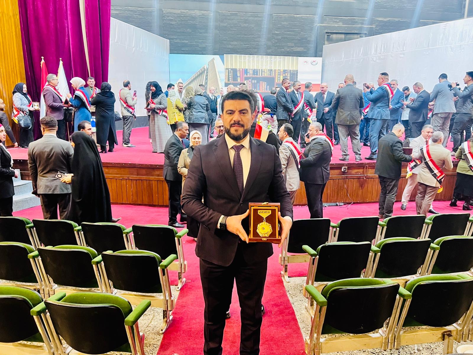 حيث اقامت وزارة التعليم العالي حفل توزيع الاوسمة والجوائز يوم الاثنين ٣٠/١٢/٢٠٢٤ في رحاب جامعة بغداد وبحضور وزير التعليم العالي ووكلاء الوزارة ورؤساء الجامعات العراقية. يذكر ان يوم العلم العراقي هو اليوم الرسمي لوزارة التعليم العالي لتكريم النخب والكفاءات من كوادرها. من الجدير بالذكر ان الدكتور مهند الجنابي يحصل على الجائزة للمرة الثالثة على التوالي. مبارك للدكتور مهند الجنابي هذا التكريم المستحق ونبارك لكلية طب تكريت هذا الانجاز العلمي الكبير ونسال الله دوام التوفيق.