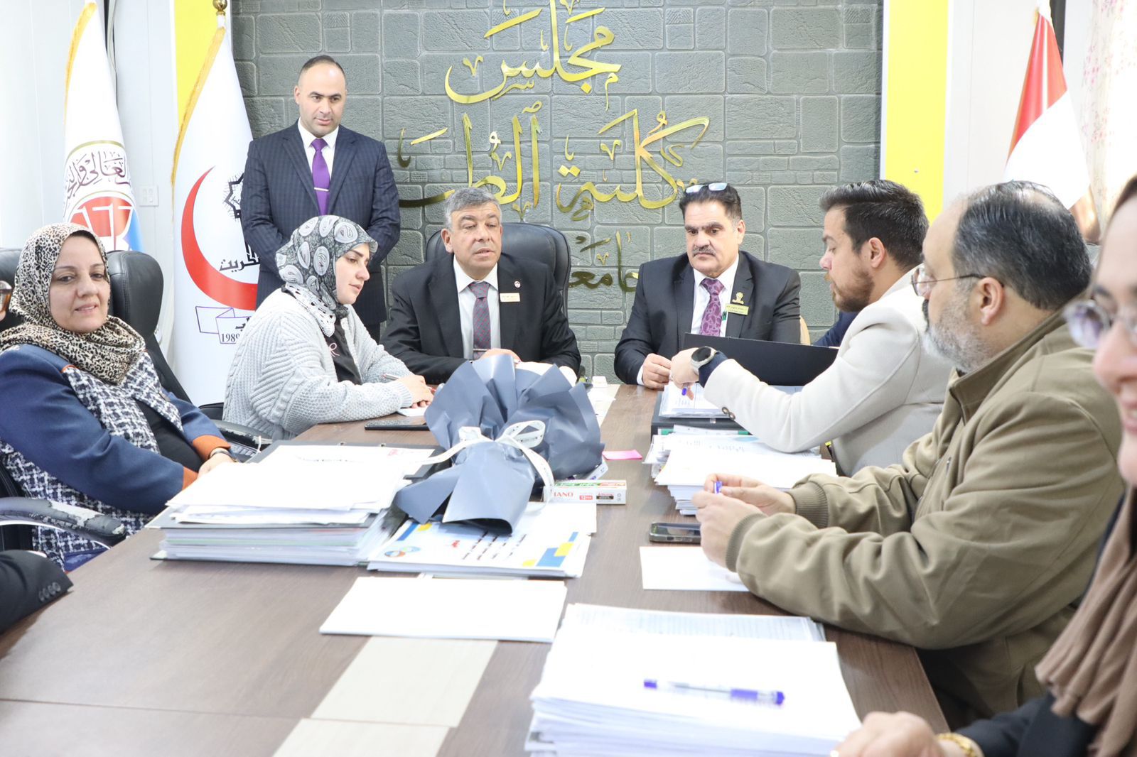 وكان في استقبال الفريق الوزاري السيد عميد كلية الطب الأستاذ الدكتور وسام سهيل نجم، يرافقه السادة معاونو العميد وأعضاء مجلس الكلية، حيث رحّب بالوفد الزائر، مؤكداً حرص الكلية على الالتزام بمعايير الجودة والاعتماد المؤسسي، والعمل وفق توجيهات الوزارة ورؤية الجامعة.