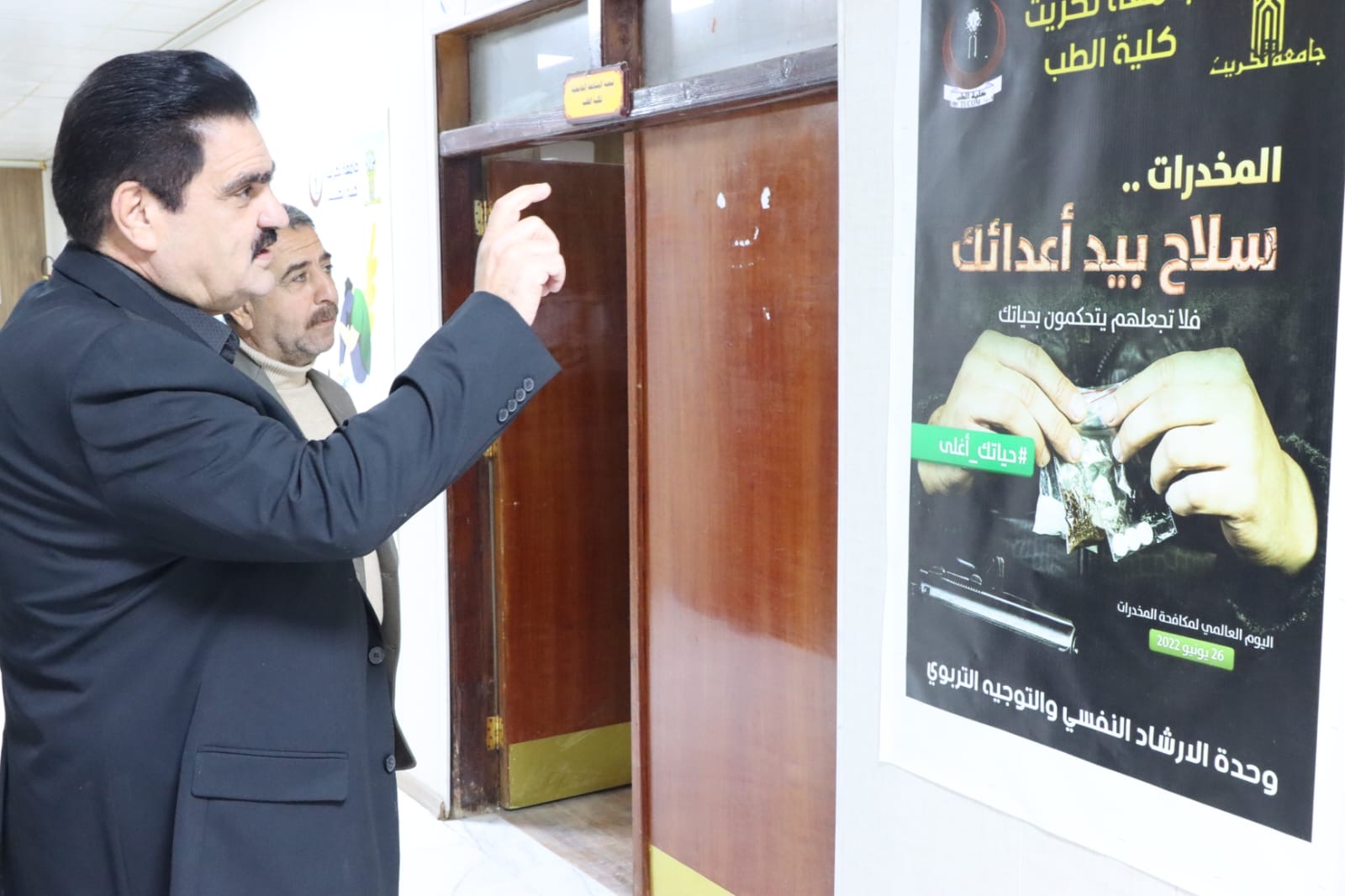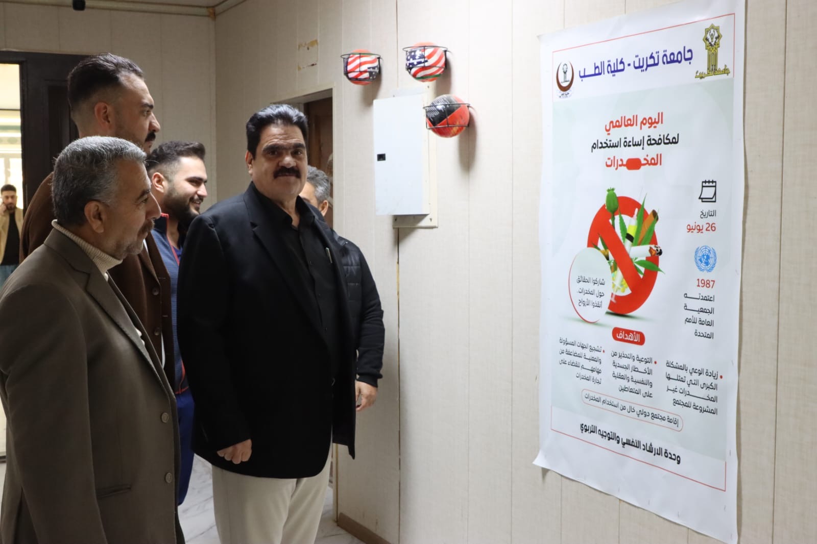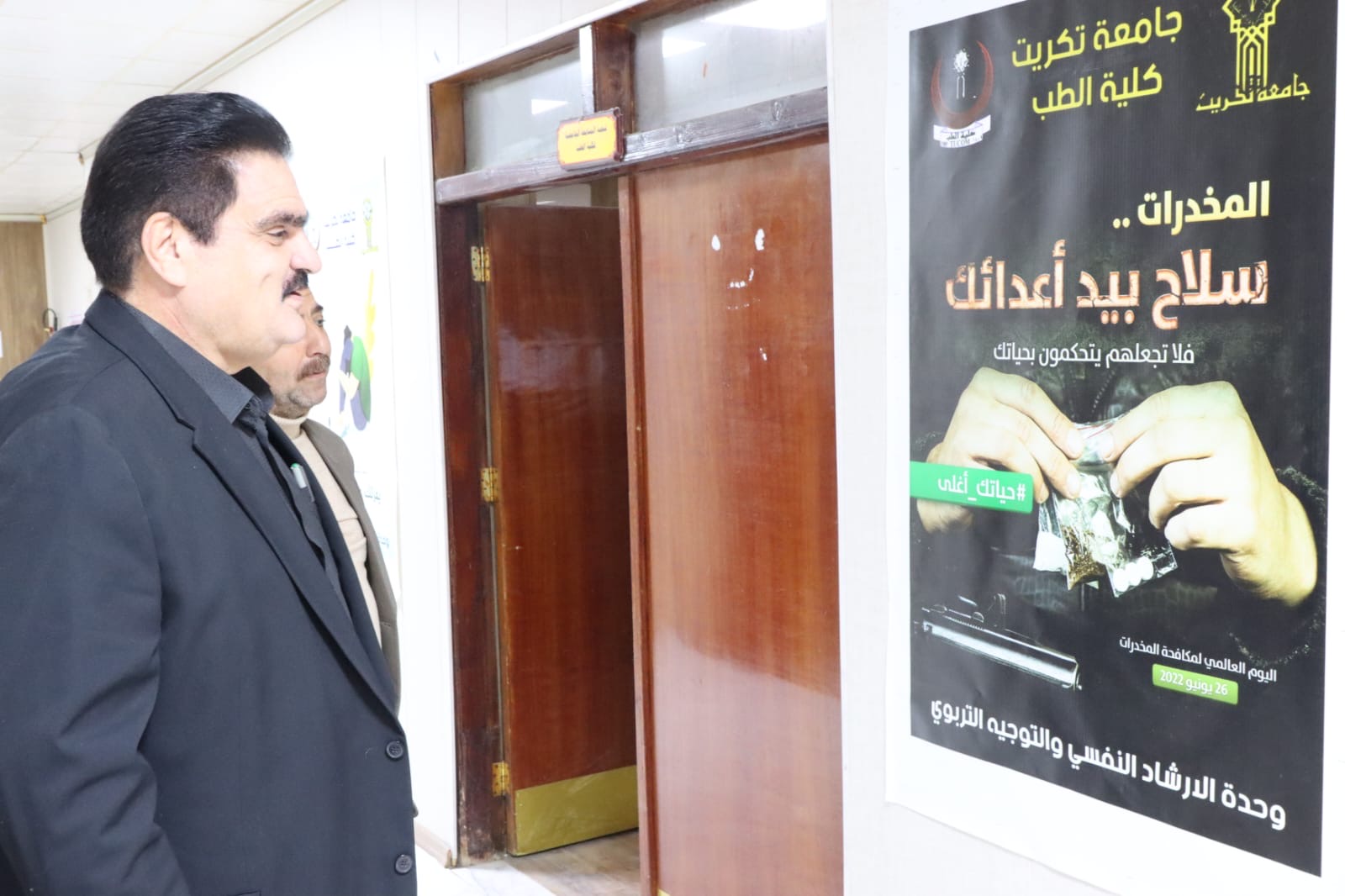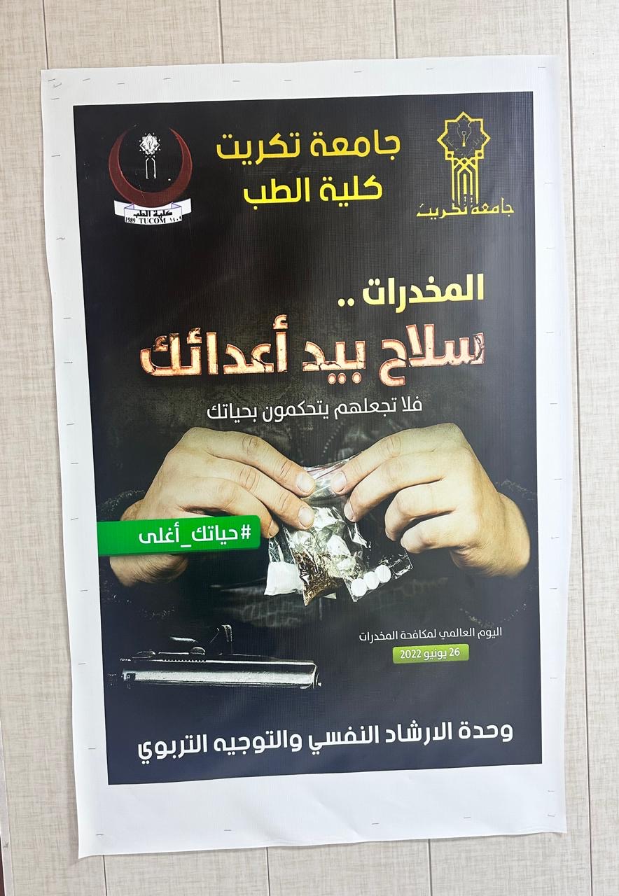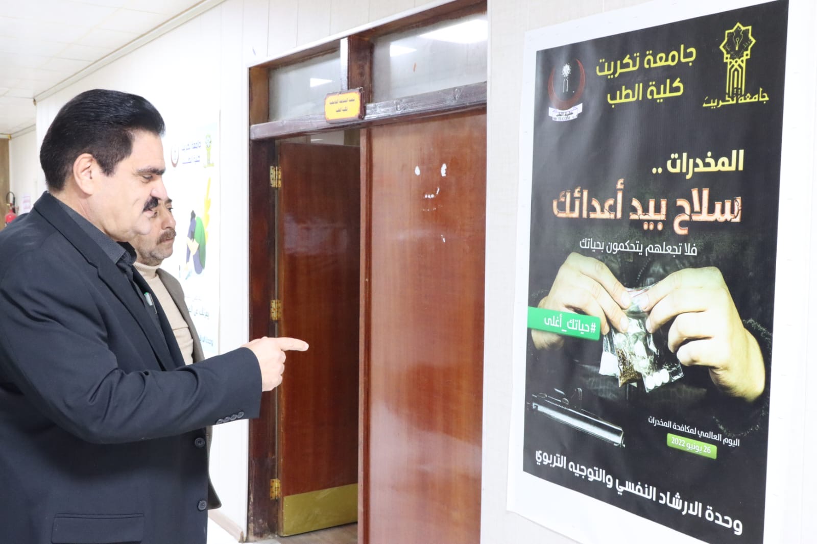 باشراف مباشر من قبل السيد عميد كلية الطب جامعة تكريت الاستاذ الدكتور وسام سهيل نجم باشرت وحدة الارشاد النفسي والتوجيه التربوي بنشر بوسترات توعوية عن مخاطر المخدرات وآثارها وتأتي هذه الخطوة ضمن سلسلة من النشاطات التي تقوم بها الوحدة بهدف التوعية من مخاطر الإدمان.