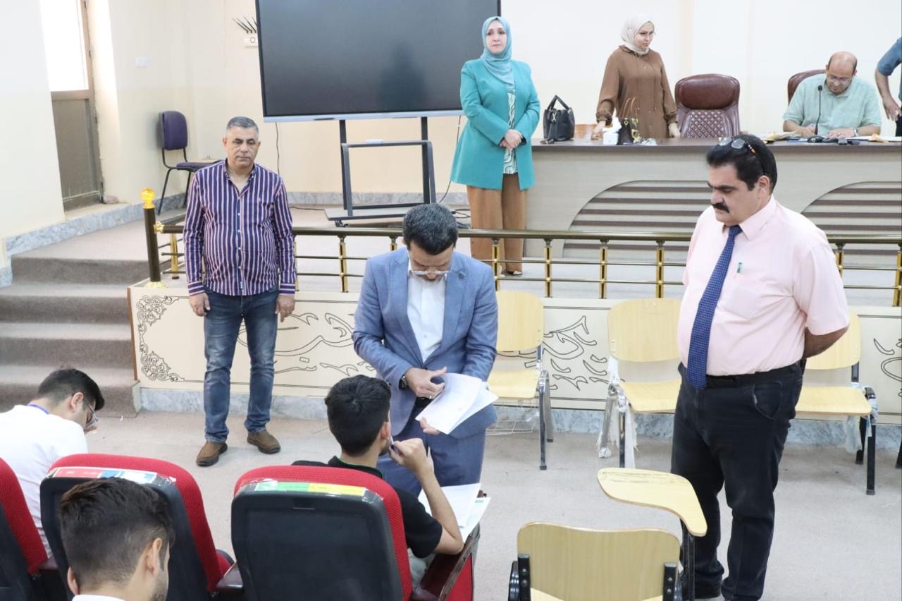 زارت اللجنة المكلفة بمتابعة سير الامتحانات النهائية في كليات الجامعة كليتنا، حيث كان في استقبالها السيد عميد الكلية الأستاذ الدكتور وسام سهيل نجم واصطحب السيد العميد أعضاء اللجنة في جولة ميدانية شملت عدداً من القاعات الامتحانية ومقار اللجان الامتحانية، ومنظومة كاميرات المراقبة. اطلعت اللجنة خلالها على آلية تنظيم الامتحانات، وطبيعة الأسئلة ومدى توفر المستلزمات الضرورية التي حرصت عمادة الكلية وكوادرها على تأمينها للطلبة الممتحنين، بما يسهم في توفير بيئة امتحانية مناسبة تضمن انسيابية الأداء والتقيد بالتعليمات والتوجيهات الصادرة عن وزارة التعليم العالي والبحث العلمي.