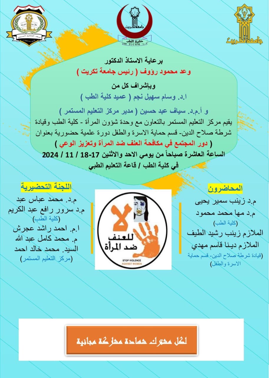 دورة علمية بعنوان دور المجتمع في مكافحة العنف ضد المرأة وتعزيز الوعي