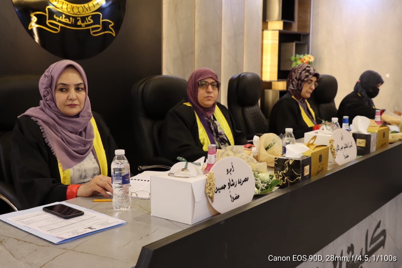 مناقشة رسالة الدبلوم العالي للطالبة دعاء جاسم كوت - فرع النسائية والتوليد جرت على منصة قاعة المناقشات المركزيه في كلية الطب مناقشة الدبلوم العالي للطالبة دعاء جاسم كوت فرع نسائيه وتوليد عن رسالتها الموسومة( تقييم حالة الحديد كمتنبىء لمرض السكر الحملي) ويبين البحث حول أهمية ارتفاع نسبة الحديد لدى النساء الحوامل وخاصة من لديهن عوامل خطوره لمرض السكر الحملي