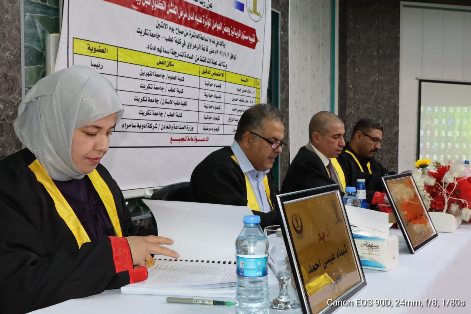 نوقشت رساله ماجستير في كليه الطب _ جامعة تكريت بعنوان (تقييم مستوى الريناليز وبعض العوامل المؤثرة عليه لدى مرضى الفشل الكلوي قبل وبعد غسيل الكلية) لطالب الماجستير ( غانم جاسم محمد) على منصة قاعة الزهراوي يوم الاثنين الموافق ٢٠٢٤/٩/٢ في هذه الدراسة، تم فحص مستويات ريناليز، والكاتيكولامينات (الإبينفرين، والنورإبينفرين، والدوبامين)، والكيموتربسين، واليوريا، والكرياتينين، والفوسفاتيز القلوي ، وناقلة أمين الألانين ،وناقلة أمين الأسبارتات لدى مرضى الفشل الكلوي المزمن قبل وبعد غسيل الكلى. تم اختيار سبعين مريضا من مرضى الفشل الكلوي المزمن وأربعين شخصا عاديا كمجموعة ضابطة . تم فحص مستويات الريناليز والكاتيكولامين والكيموتربسين بواسطة تقنية ELISA. كان مستوى الريناليز في مرضى الفشل الكلوي المزمن أقل بشكل ملحوظ عند مقارنته مع مجموعة الضابطة ، و زادت مستويات ريناليز بشكل ملحوظ بعد غسيل الكلى ، فيما يتعلق بالطبيعة الدقيقة للعلاقة بين الريناليز و(الجنس والعمر ومؤشر كتلة الجسم) لا يزال مجالا للبحث النشط. كما زادت مستويات الكاتيكولامينات (الإيبنفرين والنورإبينفرين والدوبامين) بشكل ملحوظ قبل و بعد غسيل الكلى لدى مرضى الفشل الكلوي المزمن بالمقارنة مع مجموعة الضابطة . لا توجد علاقة معنوية بين الكاتيكولامينات و(الجنس والعمر ومؤشر كتلة الجسم). كما يرتفع مستوى الكيموتريبسين في المرضى الفشل الكلوي المزمن. لا توجد علاقة معنوية بين الكيموتربسين و(الجنس والعمر ومؤشر كتلة الجسم). وللمرض تأثير على مستوى الريناليز حيث تسبب في انخفاض كبير في مستواه قبل عملية الغسيل الكلوي. المستوى العالي من ريناليز بعد غسيل الكلى سوف يقلل من كل من الكاتيكولامينات والكيموتربسين . تجدر الأشارة الى ان لجنة المناقشة تألفت من الاساتذه الافاضل :