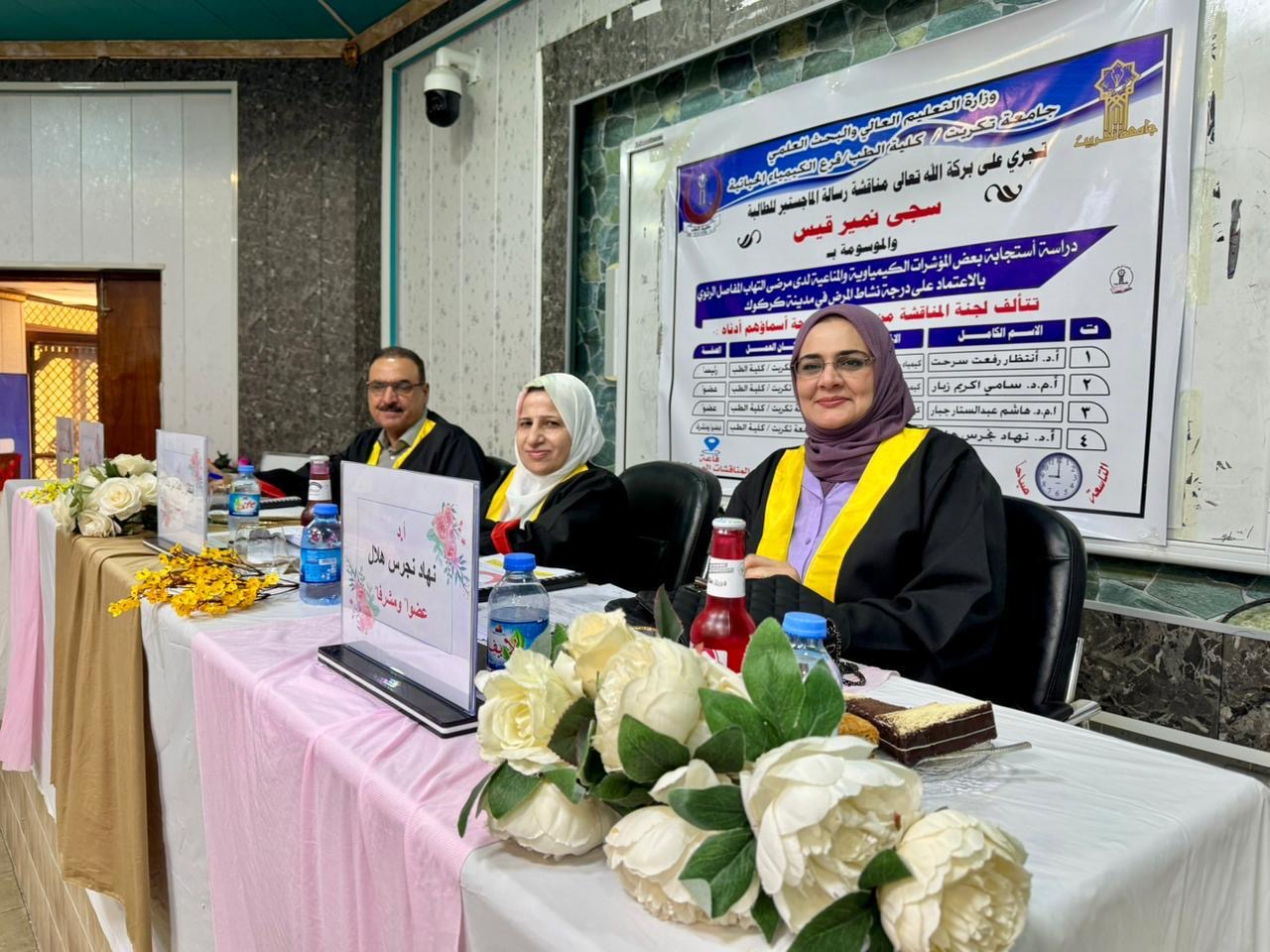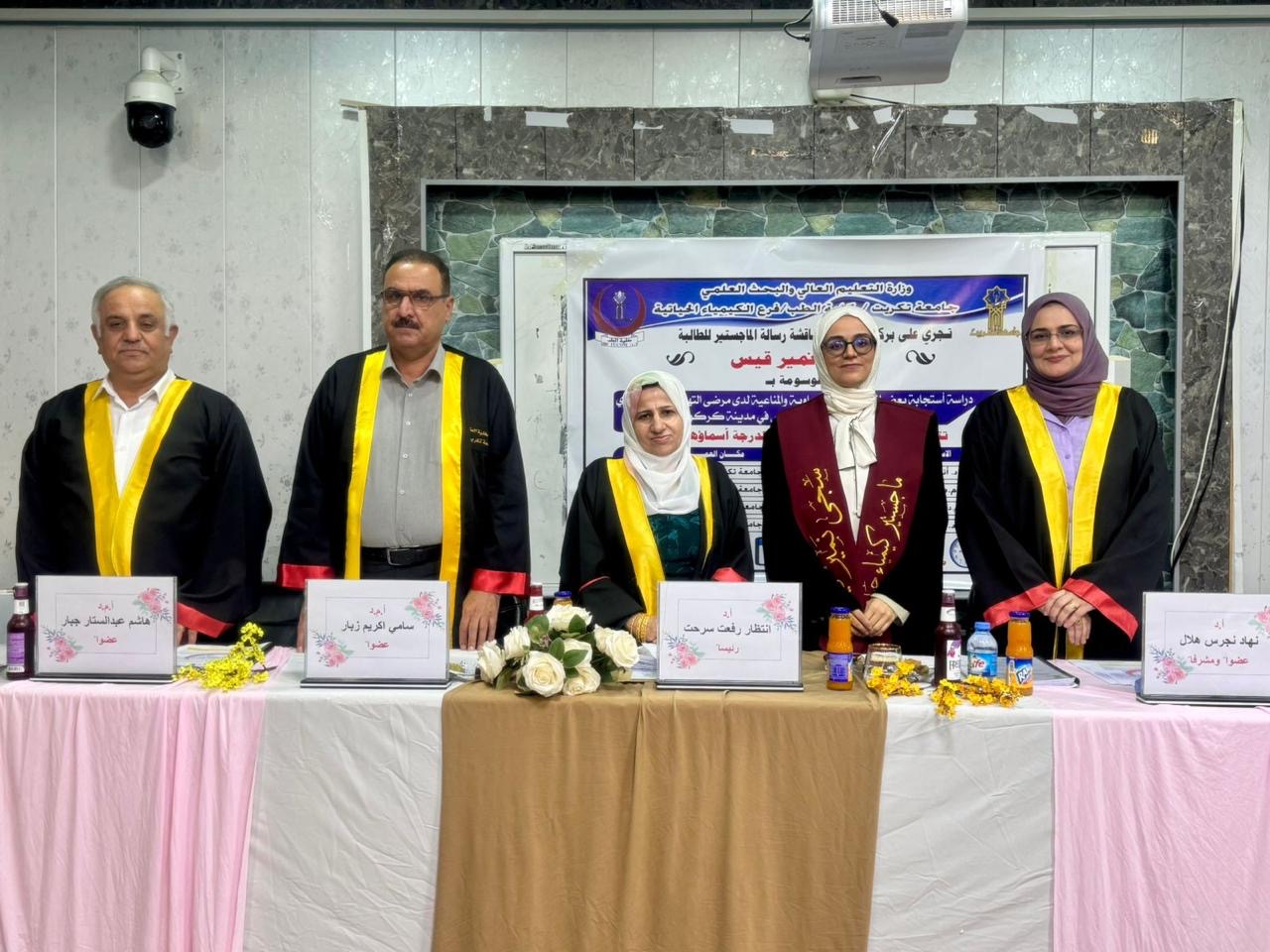 جرت بعون الله تعالى مناقشة رسالة الماجستير للطالبة سجى نمير قيس في فرع الكيمياء الحياتية، والموسومة: