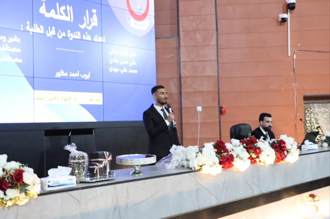 برعاية الأستاذ الدكتور وعد محمود رؤوف، رئيس جامعة تكريت، وبإشراف كل من أ.د. وسام سهيل نجم، عميد كلية الطب، وأ.م.د. سيف عبد حسين، مدير مركز التعليم المستمر، نظّم مركز التعليم المستمر بالتعاون مع كلية الطب ندوة علمية حضورية بعنوان “قرار الكلمة”.