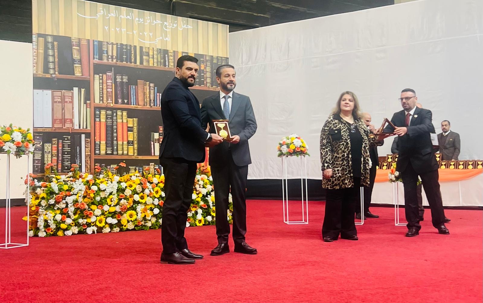 حيث اقامت وزارة التعليم العالي حفل توزيع الاوسمة والجوائز يوم الاثنين ٣٠/١٢/٢٠٢٤ في رحاب جامعة بغداد وبحضور وزير التعليم العالي ووكلاء الوزارة ورؤساء الجامعات العراقية. يذكر ان يوم العلم العراقي هو اليوم الرسمي لوزارة التعليم العالي لتكريم النخب والكفاءات من كوادرها. من الجدير بالذكر ان الدكتور مهند الجنابي يحصل على الجائزة للمرة الثالثة على التوالي. مبارك للدكتور مهند الجنابي هذا التكريم المستحق ونبارك لكلية طب تكريت هذا الانجاز العلمي الكبير ونسال الله دوام التوفيق.