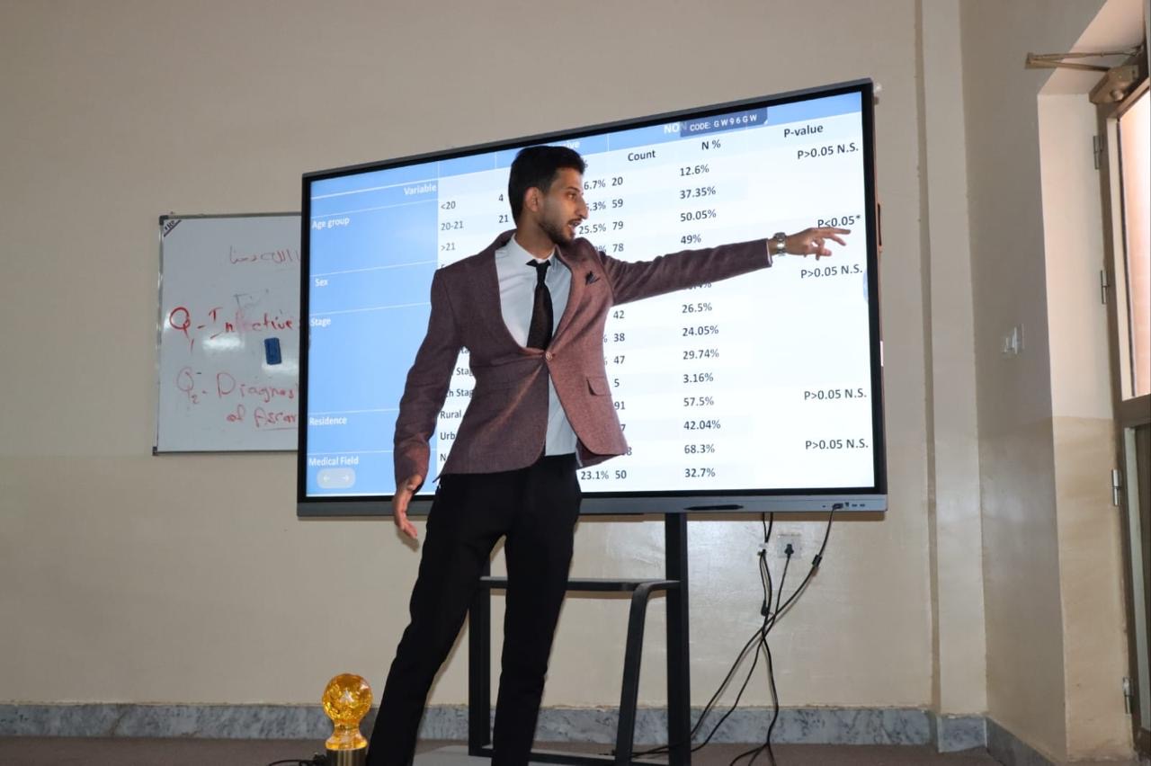 تحت شعار “بحوثنا نبض المستقبل الطبي”، وبرعاية كريمة من الأستاذ الدكتور وعد محمود رؤوف، رئيس جامعة تكريت، وإشراف الأستاذ الدكتور وسام سهيل نجم، عميد كلية الطب، نظّمت كليتنا المؤتمر الطلابي لمناقشة بحوث التخرج للمرحلة الخامسة للعام الدراسي 2024-2025 لم يقتصر المؤتمر على تعزيز الجوانب النظرية والعملية لدى الطلبة فحسب، بل سعى إلى تشجيع البحث العلمي بعد التخرج، وتنمية روح التنافس الأكاديمي، مما يسهم في تطوير مهاراتهم البحثية وتعزيز قدراتهم في الإلقاء والمناقشة. كما كان للمؤتمر دور بارز في ترسيخ التعاون العلمي المشترك بين التدريسيين من مختلف الفروع الطبية شهدت الجلسات تفاعلًا ملحوظًا بين الطلبة ومشرفيهم، حيث أتاح المؤتمر فرصة قيّمة للتدريسيين للاطلاع على الأبحاث العلمية لبقية المشرفين، مما عزز من تبادل الخبرات والمعرفة. وأكدت اللجنة العلمية ولجان المناقشة على ضرورة تبنّي منهجية بحثية رصينة ترتقي بمستوى المعرفة في المجال الطبي وفي ختام المؤتمر، قامت اللجنة العلمية باختيار أفضل ثلاثة بحوث، وذلك استنادًا إلى التقييمات الممنوحة من قبل الأساتذة المناقشين، تكريمًا للجهود البحثية المتميزة التي تعكس مستوى الإبداع والتفوق العلمي لدى الطلبة.