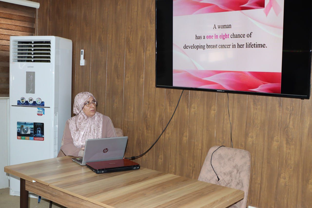 على منصة قاعة التعليم الطبي نظم مركز التعليم المستمر بالتعاون مع كلية الطب دورة علمية تحت عنوان ( كيف نحارب سرطان الثدي )
