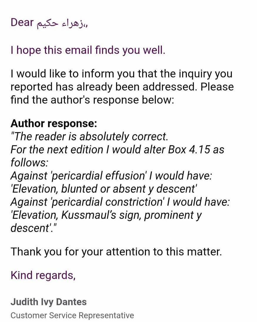 وبعد قيامها بمراجعة دقيقة للمعلومة، قامت الزبيدي بمخاطبة الجهات المختصة في دار النشر، حيث أكد فريق التصحيح العلمي للكتاب وجود الخطأ بالفعل، وأعلنوا أنه سيتم تصحيحه في الطبعات القادمة.