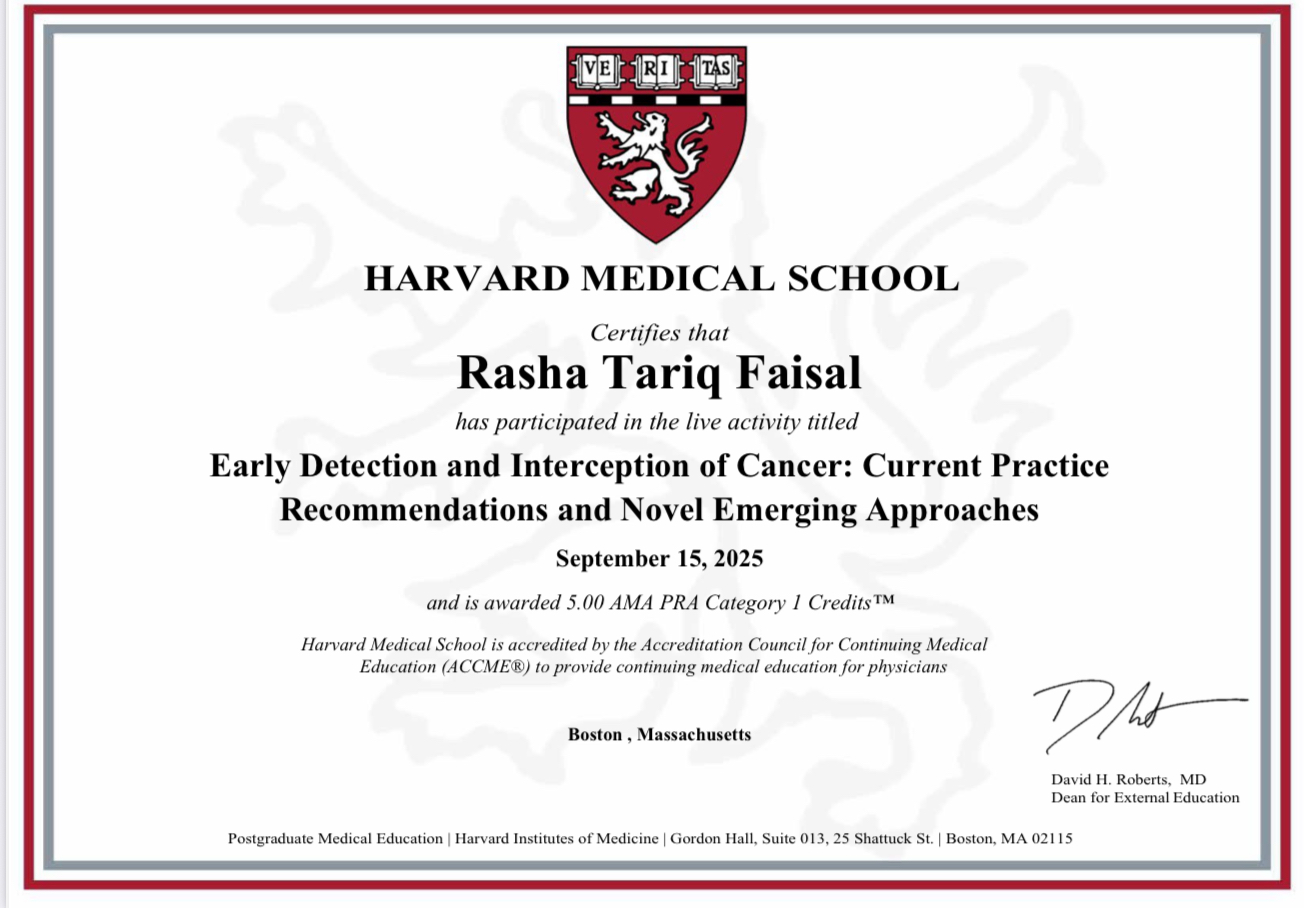 تُبارك كلية الطب – جامعة تكريت للطالبة رشا طارق فيصل، من طلبة المرحلة الخامسة، لمشاركتها المتميزة في المؤتمر العلمي العالمي الذي نظمته كلية الطب – جامعة هارفارد بالتعاون مع معهد دانا فاربر للسرطان وأبحاثه، والذي عُقد في مدينة بوسطن – الولايات المتحدة الأمريكية، تحت عنوان: