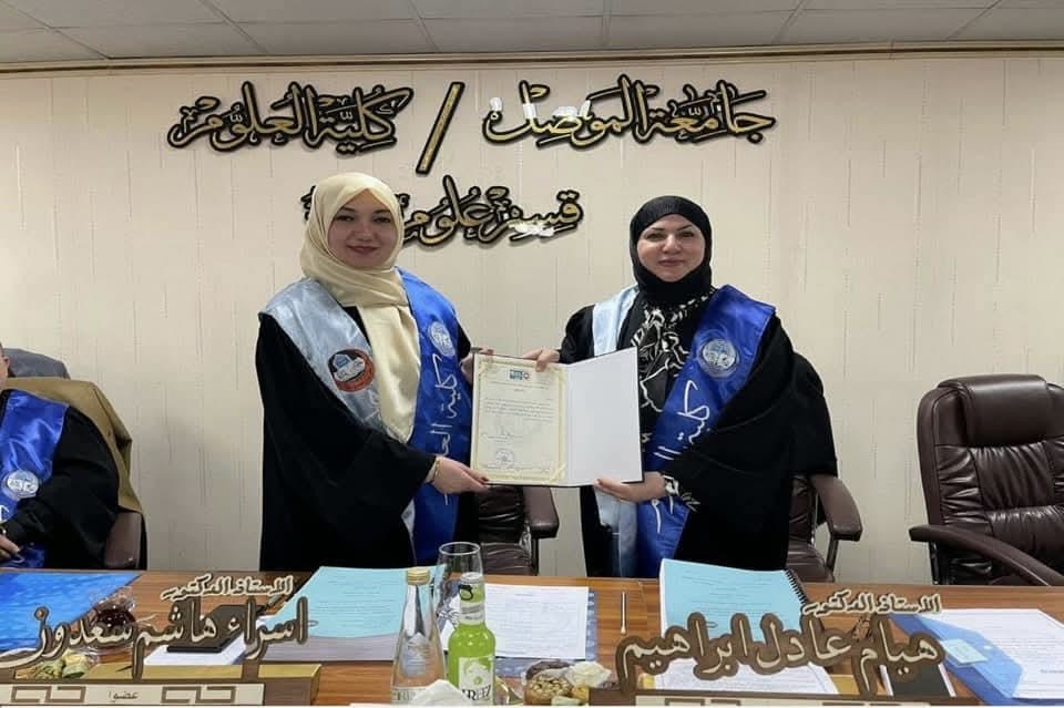 شاركت الدكتورة إسراء هاشم سعدون، التدريسية في فرع الأحياء المجهرية – كلية الطب، في مناقشة أطروحة دكتوراه بكلية العلوم في جامعة الموصل، والتي جاءت تحت عنوان:“انتشار جينات جرثومة الملوية البوابية المصاحبة للعدوى الفيروسية في المرضى المصابين بأمراض الجهاز الهضمي” وجاءت مشاركة الدكتورة إسراء ضمن لجنة المناقشة، حيث قدمت ملاحظاتها العلمية القيّمة التي أسهمت في إثراء البحث، وفي ختام الجلسة تم تكريمها بكتاب شكر وتقدير تقديرًا لجهودها العلمية ودورها في دعم البحث الأكاديمي.