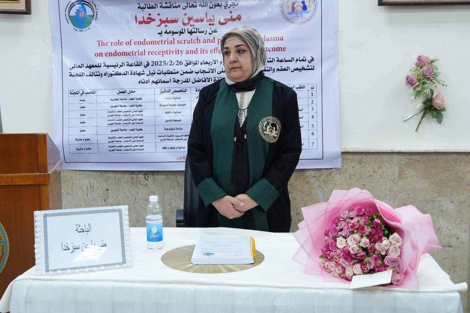 شاركت الأستاذة الدكتورة إسراء هاشم عبد الكريم، التدريسية في كلية الطب ورئيسة فرع النسائية والتوليد، في المعهد العالي لتشخيص العقم والتقنيات المساعدة على الإنجاب – جامعة النهرين، بصفة رئيس لجنة مناقشة لأطروحة الدكتوراه المقدمة من الطالبة (منى ياسين سبزخدا) شهدت المناقشة طرحًا علميًا معمقًا تناول مكامن القوة والضعف في الأطروحة، حيث أضافت الأستاذة الدكتورة إسراء هاشم عبد الكريم رؤى علمية وملاحظات دقيقة عززت من القيمة الأكاديمية للبحث. وتأتي هذه المشاركة تقديرًا للمكانة العلمية المتميزة التي تحظى بها كلية الطب – جامعة تكريت وتدريسوها.