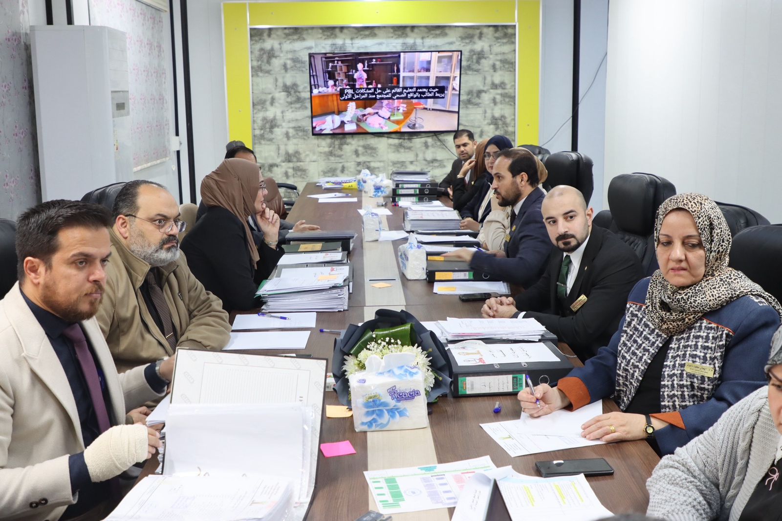 وتضمنت الزيارة عقد اجتماع مع إدارة الكلية، جرى خلاله استعراض آليات العمل المعتمدة، والاطلاع على عدد من الملفات والوثائق الخاصة بالاعتماد المؤسسي، إضافة إلى جولة شملت بعض المفاصل الأكاديمية والإدارية في الكلية