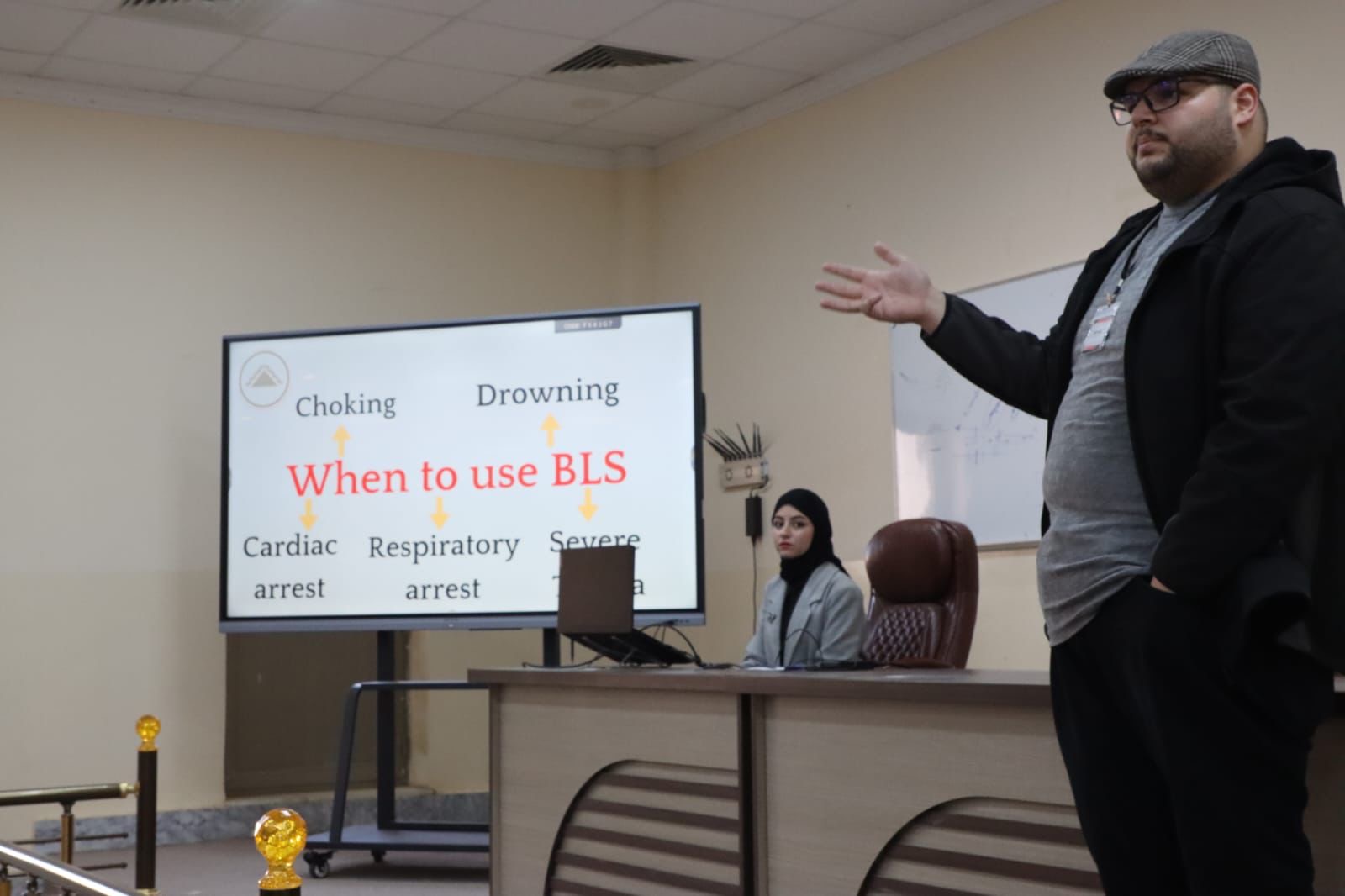تحت إشراف عمادة كلية الطب اقام مجموعة من طلبة كلية طب محاضرة عن (مفهوم الإسعافات الأولية ) وفي هذا السياق، قدمت المحاضرة الشرح المفصل عن الإسعافات الأولية المهنية، وهي مجموعة من الإجراءات الفورية، والتي يتم اتخاذها لتقديم الرعاية الطبية الأساسية للأشخاص الذين تعرضوا لإصابات أو حالات طارئة قبل الوصول إلى المساعدة الطبية المتخصصة، ويتضمن ذلك بعض الحالات، مثل (الإغماء ، النبض ، التنفس ، ضغط الدم ، درجة الحرارة ، لون البشرة ، حركة بؤبؤ العين ، والقدرة على التحرك ، ردة الفعل على الألم ); وأن ووجود أشخاص مدربين يمكن أن يحدث فرقًا كبيرًا في إنقاذ الأرواح، حيث يكون مسؤولًا عن تقديم الرعاية الفورية للمصابين، وتقييم حالاتهم، وتطبيق الإجراءات المناسبة حتى وصول الخدمات الطبية، ويتطلب هذا الدور معرفة شاملة بالإسعافات الأولية وتتضمن المحاضرة المقدمة من قبل طلاب دروسًا في كيفية استخدام أدوات الإسعافات الأولية، والتعرف على الأعراض الحرجة، والتي يُتوقع أن تسهم هذه المحاضرة في تعزيز ثقافة السلامة في العمل وتوفير بيئة أكثر أمانًا للجميع
