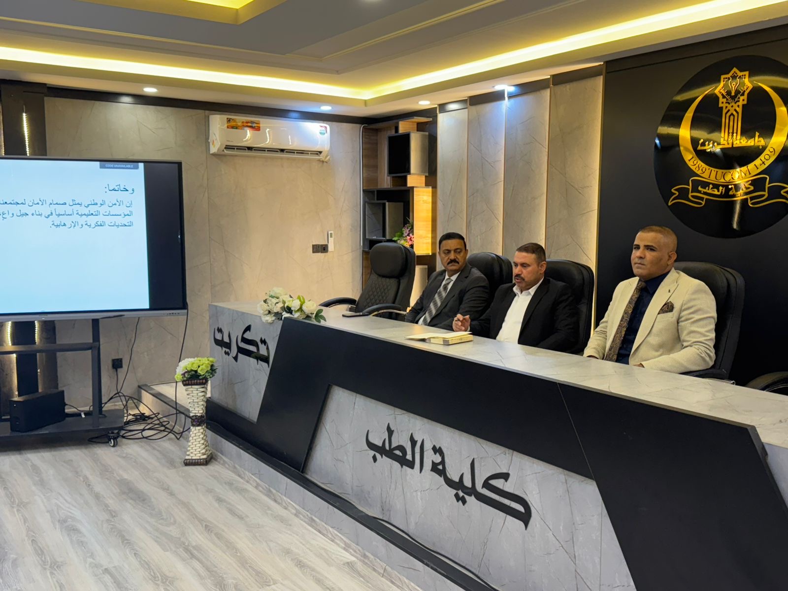 نظّمت كلية الطب بالتعاون مع وفد من جهاز الأمن الوطني، ندوة علمية تحت عنوان: “دور الأمن الوطني في الحد من العمليات الإرهابية”، وذلك في إطار تعزيز الوعي الأمني لدى الطلبة، وتأكيدًا على أهمية التكامل بين المؤسسات التعليمية والأمنية في مواجهة التحديات التي تهدد أمن واستقرار المجتمع.