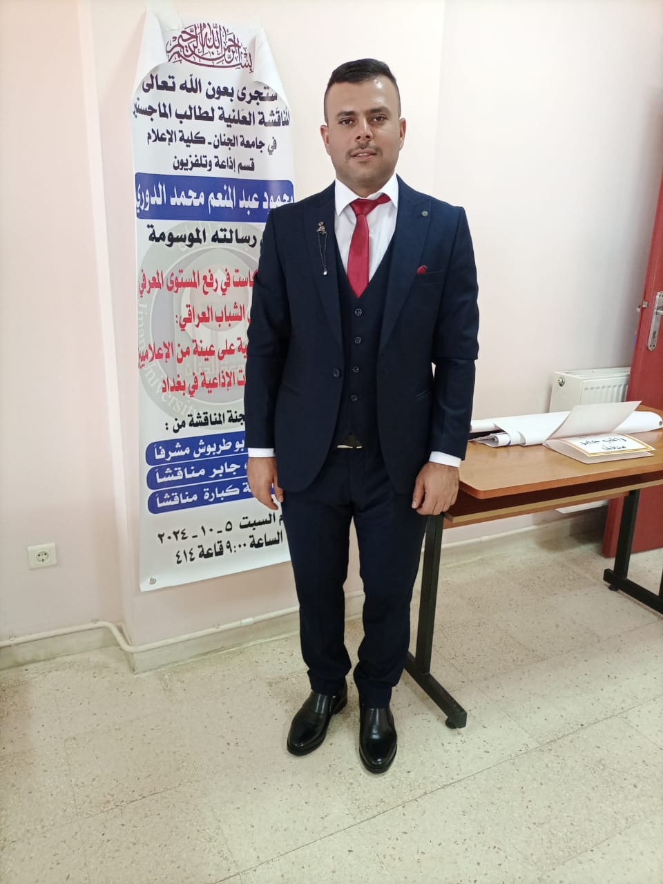 تتقدم عمادة كلية الطب بأجمل التهاني والتبريكات الى الاستاذ( محمود عبدالمنعم محمد )الموظف في كليتنا شعبة الاعلام والاتصال الحكومي بمناسبة حصوله على شهادة الماجستير في تخصص الاعلام فرع الاذاعة والتلفزيون