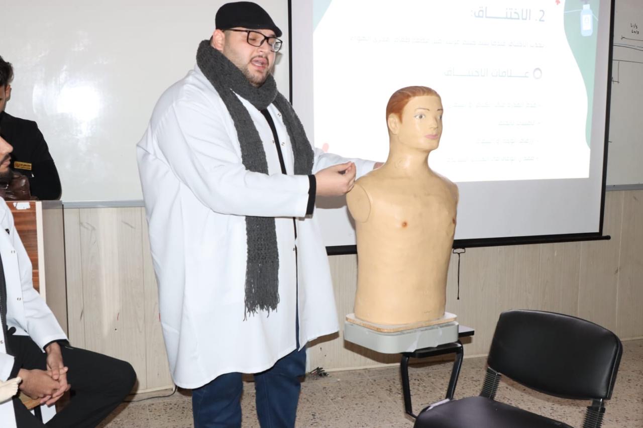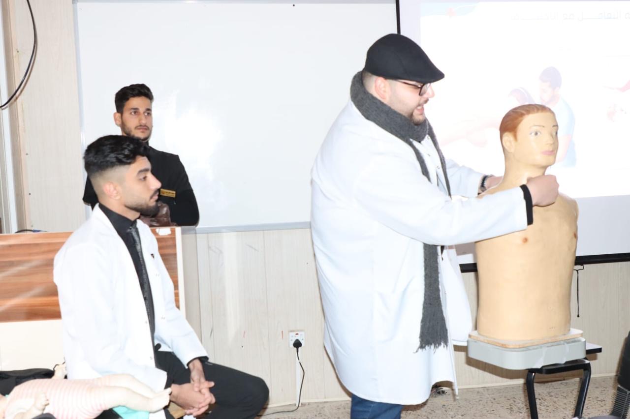 تميزت الدورة بجانب عملي مكثف، حيث تم تدريب الحضور على إجراء الإنعاش القلبي الرئوي وإسعاف حالات الاختناق لدى البالغين والأطفال باستخدام الموديلات الطبية. كما تم توزيع بروشورات توعوية عن الإسعافات الأولية، والإجابة على أسئلة الطلبة لضمان فهم شامل للمواضيع المطروحة.