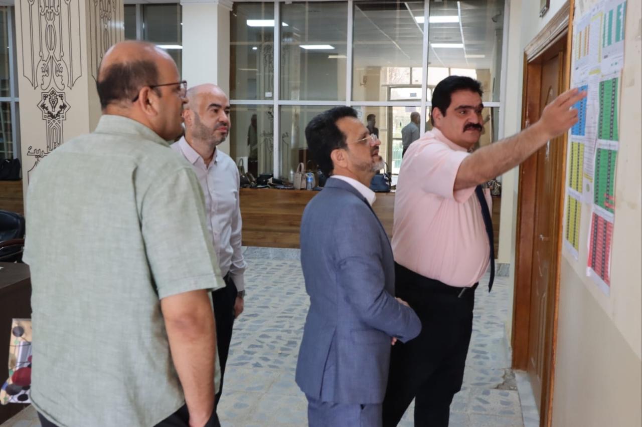 زارت اللجنة المكلفة بمتابعة سير الامتحانات النهائية في كليات الجامعة كليتنا، حيث كان في استقبالها السيد عميد الكلية الأستاذ الدكتور وسام سهيل نجم واصطحب السيد العميد أعضاء اللجنة في جولة ميدانية شملت عدداً من القاعات الامتحانية ومقار اللجان الامتحانية، ومنظومة كاميرات المراقبة. اطلعت اللجنة خلالها على آلية تنظيم الامتحانات، وطبيعة الأسئلة ومدى توفر المستلزمات الضرورية التي حرصت عمادة الكلية وكوادرها على تأمينها للطلبة الممتحنين، بما يسهم في توفير بيئة امتحانية مناسبة تضمن انسيابية الأداء والتقيد بالتعليمات والتوجيهات الصادرة عن وزارة التعليم العالي والبحث العلمي.