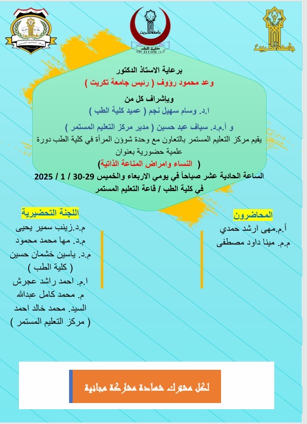 اعلان دورة علمية حضورية بعنوان (النساء وامراض المناعة الذاتية)