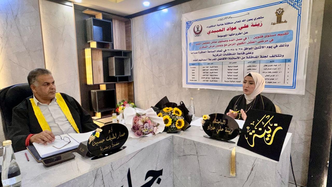 ناقش فرع الكيمياء الحياتية في كلية الطب بجامعة تكريت أطروحة الدكتوراه الموسومة “تقييم مستوى فيتوين-أ في مصل الدم ومستوى عامل تفاضل النمو-١٥ في الفشل الكلوي المزمن مع وبدون مرض السكري”، للطالبة زينة علي عواد، بإشراف الأستاذ الدكتور عمار لطيف حسين.