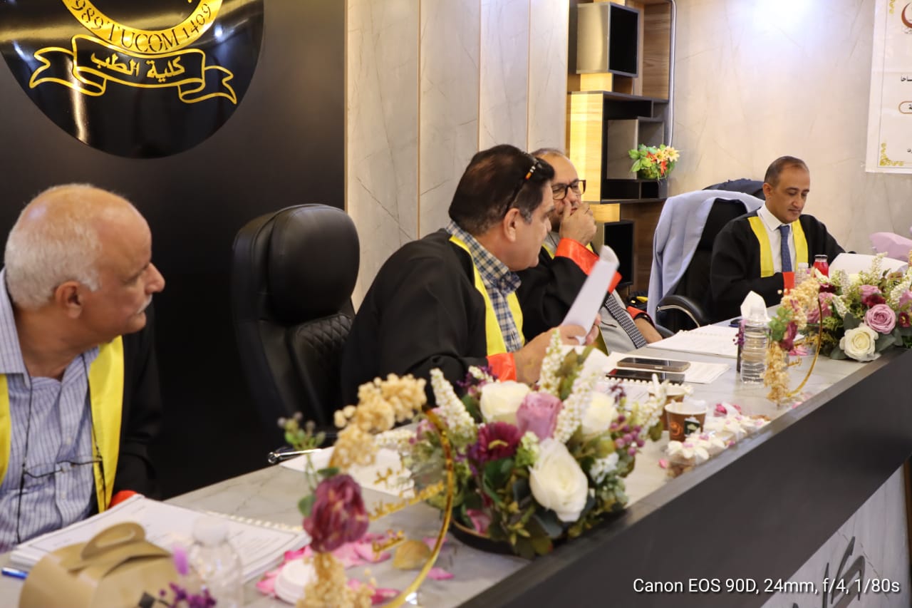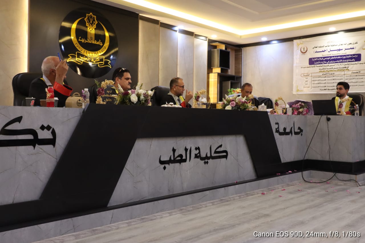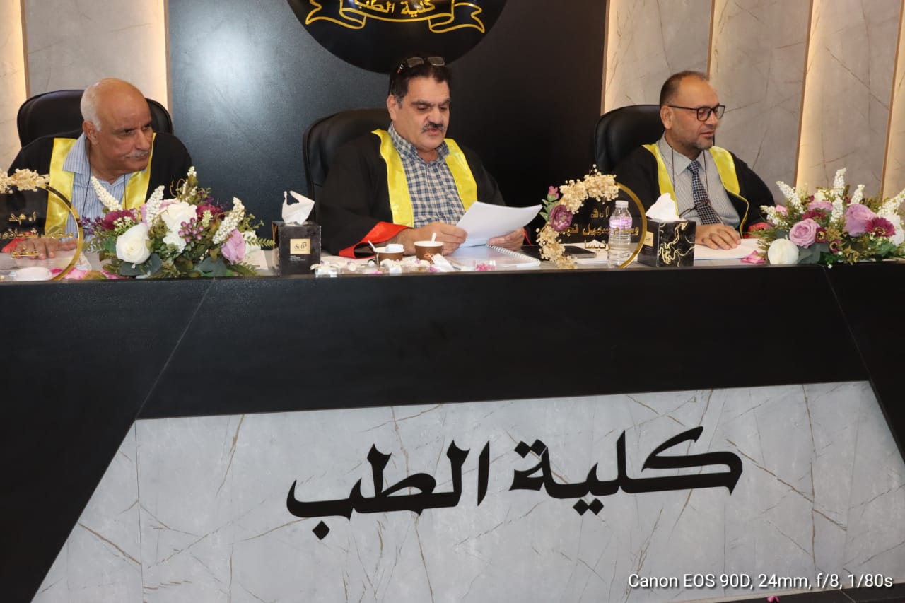 مناقشة رسالة الدبلوم العالي للطالب ( عمر سهيل احمد ) فرع الطب الباطني- الشعبة الجلدية. جرت على منصة قاعة المناقشات المركزية في كلية الطب مناقشة رسالة الدبلوم العالي للطالب عمر سهيل احمد فرع الطب الباطني- شعبة الجلدية