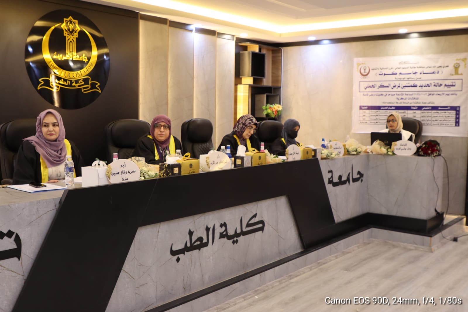 مناقشة رسالة الدبلوم العالي للطالبة دعاء جاسم كوت - فرع النسائية والتوليد جرت على منصة قاعة المناقشات المركزيه في كلية الطب مناقشة الدبلوم العالي للطالبة دعاء جاسم كوت فرع نسائيه وتوليد عن رسالتها الموسومة( تقييم حالة الحديد كمتنبىء لمرض السكر الحملي) ويبين البحث حول أهمية ارتفاع نسبة الحديد لدى النساء الحوامل وخاصة من لديهن عوامل خطوره لمرض السكر الحملي