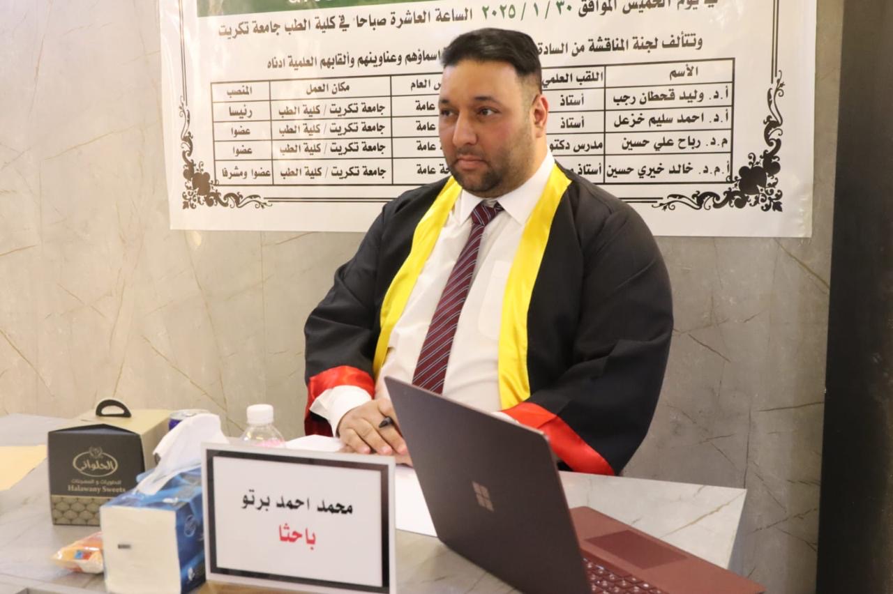 مناقشة رسالة الدبلوم العالي في الجراحة للطالب "محمد أحمد برتو "