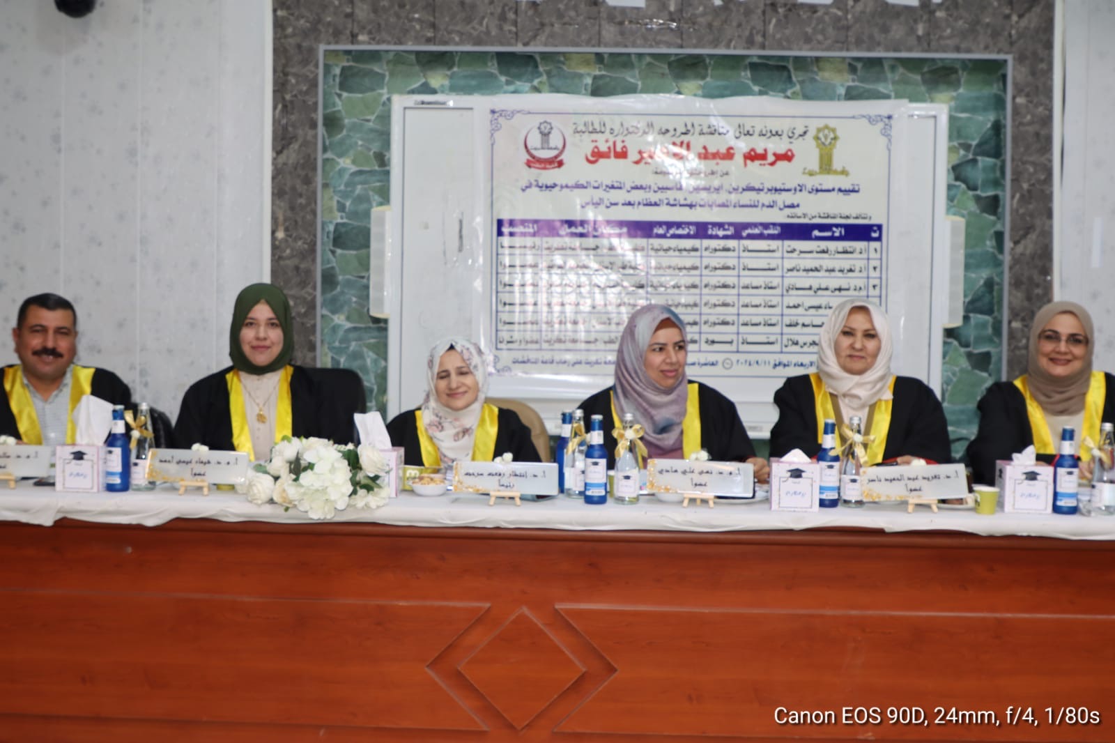 مناقشة أطروحة الدكتواره في كلية الطب – جامعة تكريت بعنوان ( تقييم مستوى الاوستيوبرتيكرين ,ايريسين, فاسبين وبعض المتغيرات الكيموحيوية في مصل الدم للنساء المصابات بهشاشة العظام بعد سن اليأس.) لطالبة الدكتوراه (مريم عبدالامير فائق )