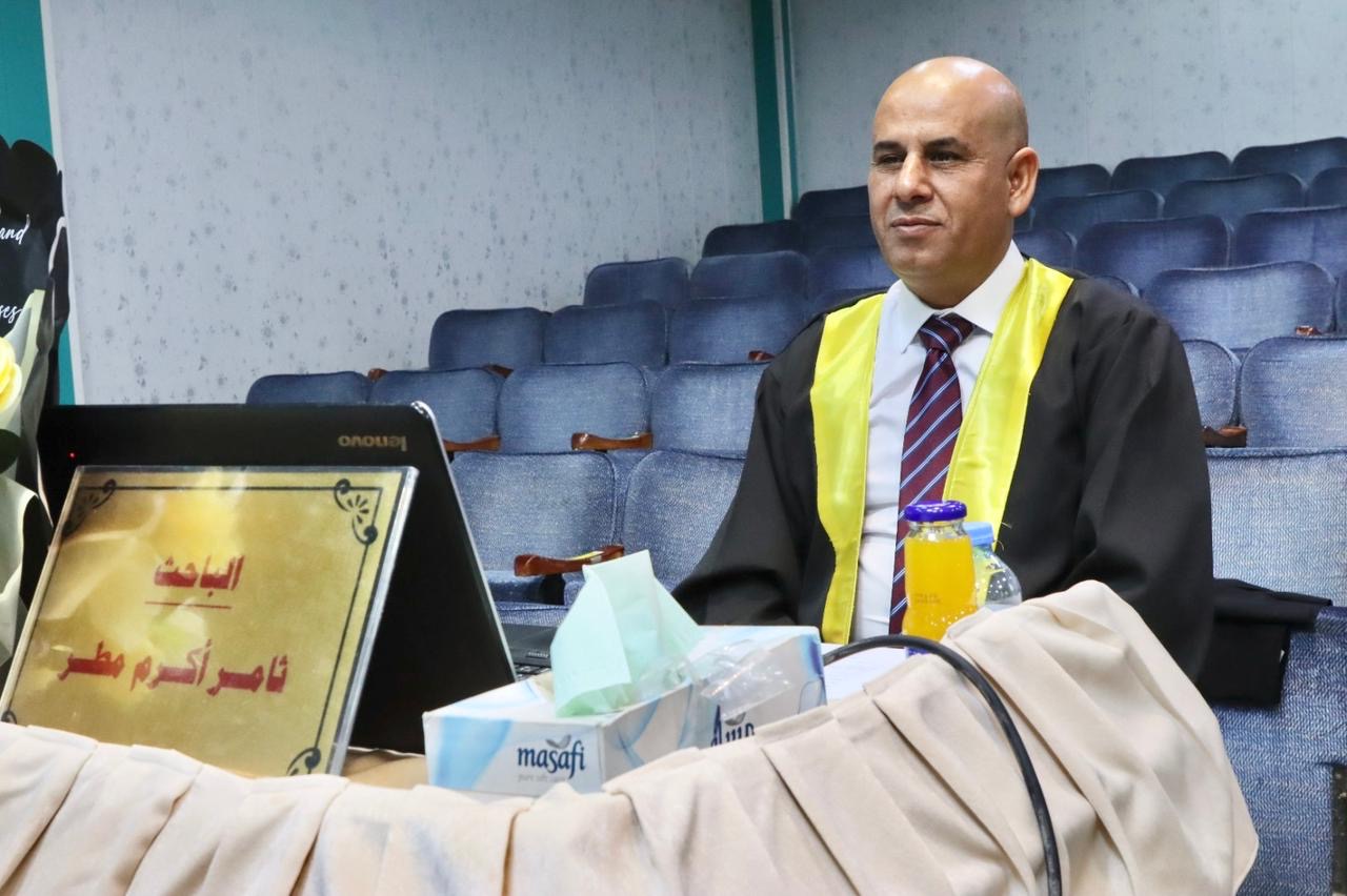 جرت على منصه قاعة الزهراوي في كلية الطب مناقشة رسالة الماجستير - فرع الاحياء المجهرية للطالب ثامر اكرم مطر عن رسالته الموسومة (تقيم علاقة العدوى البكتيرية والعوامل المناعية بقرحة القدم السكري )